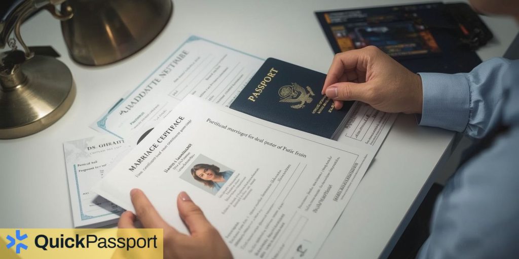 • Required Documentation: You’ll need your current passport, certified marriage certificate, completed DS-82 form (if eligible), and a new passport photo that meets current State Department requirements.